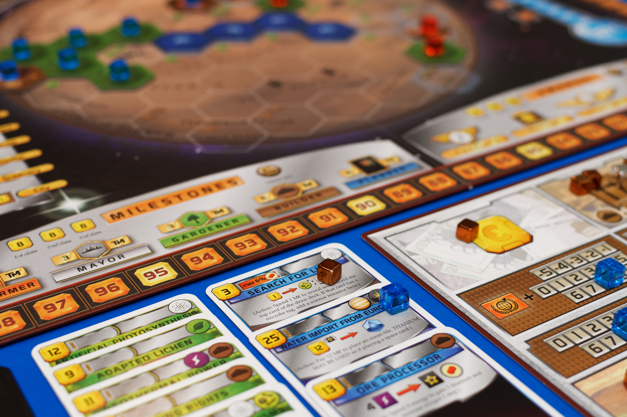- Managing resources to perform ‘projects’ – Terraforming Mars. In this game, global warming is a positive outcome, not a problem, but it is the management of resources to implement projects that is interesting here. Project cards are used by many sustainability learning games, such as The SDG 2030 game – mentioned in another article this month. This kind of project mechanic – implemented by ‘buying’ and playing projects is especially useful for corporate learning as this can be adapted to reflect the way that learners actually work in their jobs. Imagine creating a game to simulate the implementation of sustainability projects within their business. The science behind the projects is also sound and well represented within the game. A really interesting aspect is that some projects can only be played once certain planetary conditions are met – a mechanism that I found very useful when recently creating a ‘planetary boundaries/tipping points’ learning game.