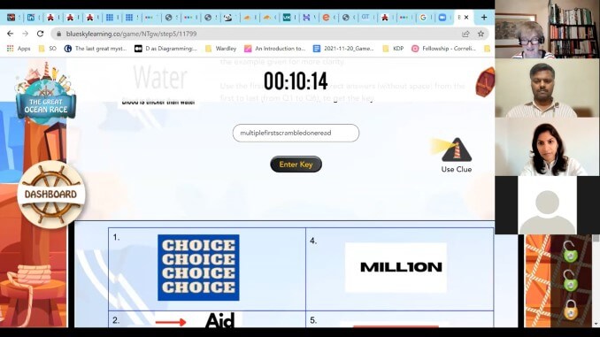 Honey Khanduja and Deepthi Boddupally of Blue Sky Learning co-hosted this session from Blue Sky Learning. Bhaskar Thyagarajan, who has already written an article about the games design process was unfortunately unable to attend.