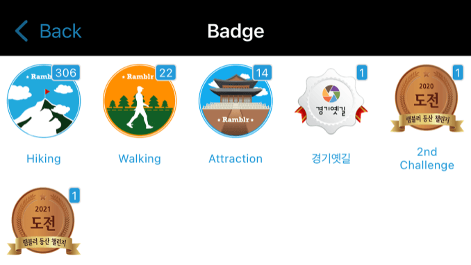 ’Note’ can be used as a user’s personal notebook that does not include any objectives set by the app. Users can set their own long-term objectives, such as ‘I will conquer 50 mountains this year’. Another type of ‘Note’ is a ‘Mission Note’ with pre-determined objectives. For example, the objective ‘Conquer the top 100 mountains in Korea’ is pre-defined and linked to collecting the ‘Badge’ and ‘Certificate’.