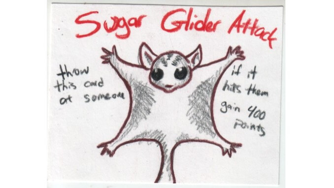 All ‘rules’ of this game are purely guidelines and can be flouted at will, but a popular convention is that cards should have three parts; a title, a drawing, and an effect.